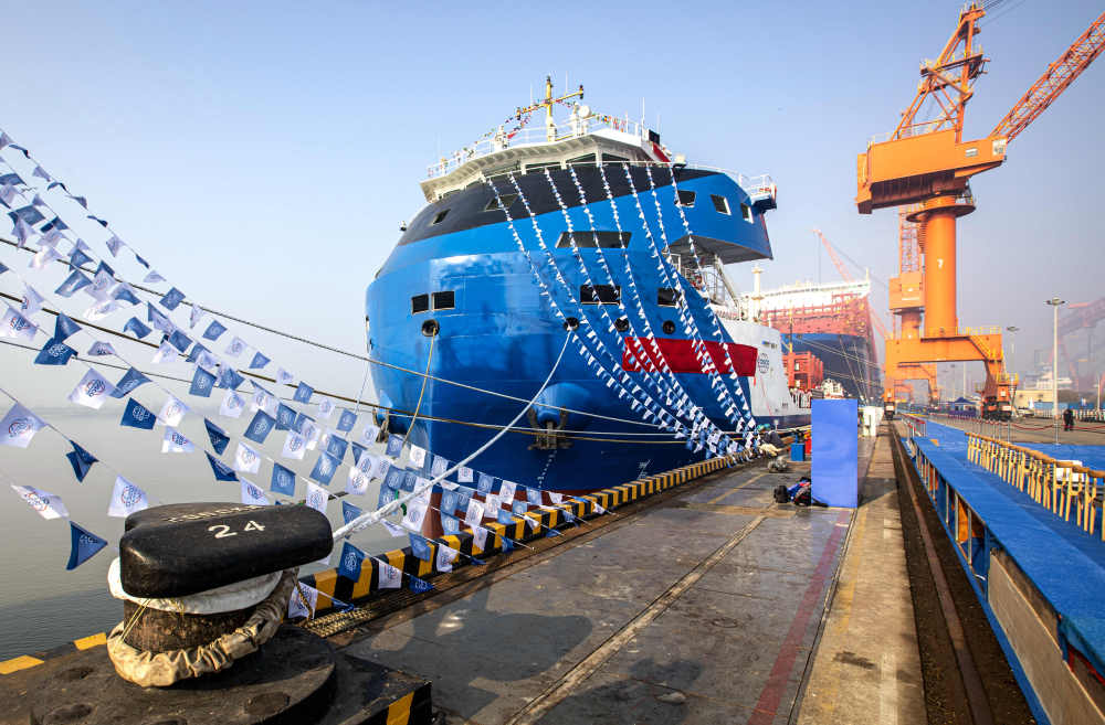 这是国产万吨级电动集装箱船“中远海运绿水01”(2023年12月28日摄)。新华社发(任飞 摄)
