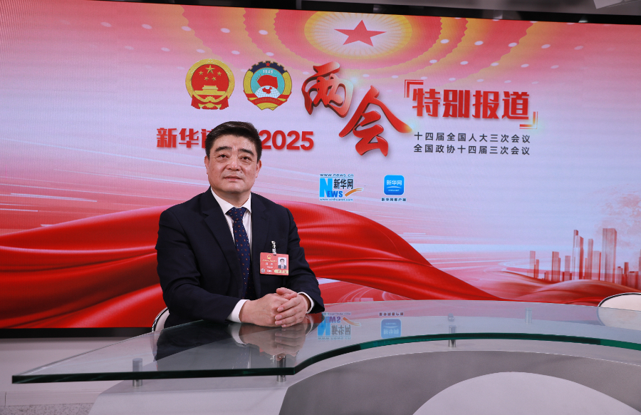 图为全国人大代表,中国石化青岛石化有限责任公司执行董事、党委书记韩峰做客新华网。