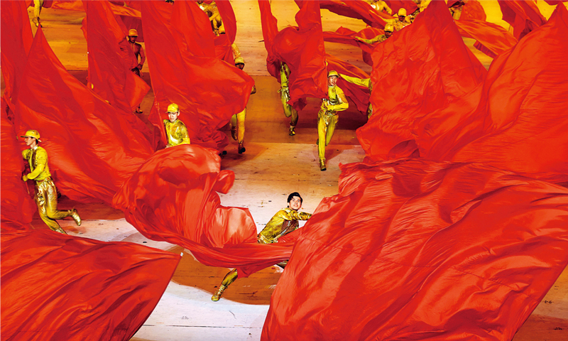 2021年6月28日晚,庆祝中国共产党成立100周年文艺演出《伟大征程》在国家体育场盛大举行。这是鼓乐歌舞《新的天地》。 新华社记者 黄敬文/摄