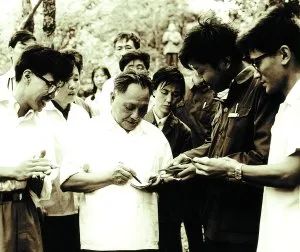 ▲1979年7月,邓小平同志在黄山为大学生签名。