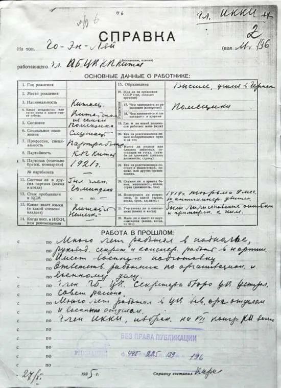 ▲周恩来为共产国际填写的履历表,其中注明:1921年加入中国共产党。
