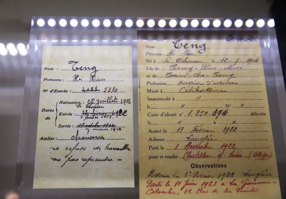 ▲邓小平当年在法国的居留登记卡和工作档案卡