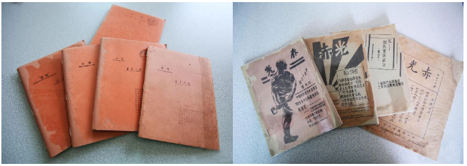 ▲《少年》杂志(左一)和《赤光》杂志(右一)原刊