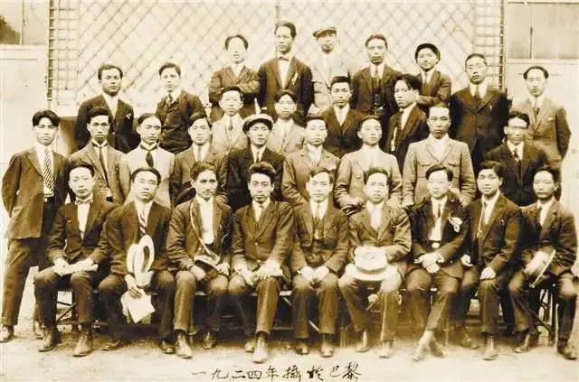▲1924年7月,旅欧共产主义青年团第五次代表大会后,欢送周恩来同志回国时合影。邓小平(最后排右三)