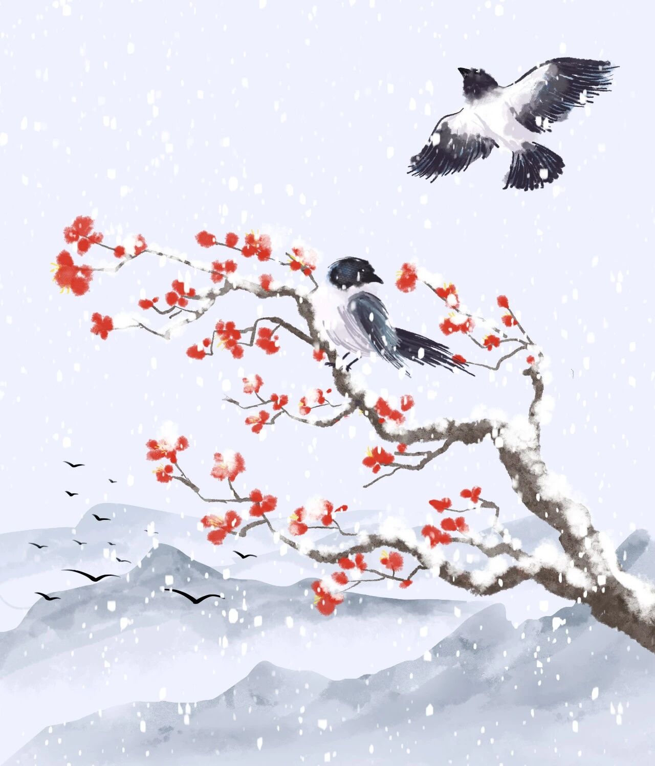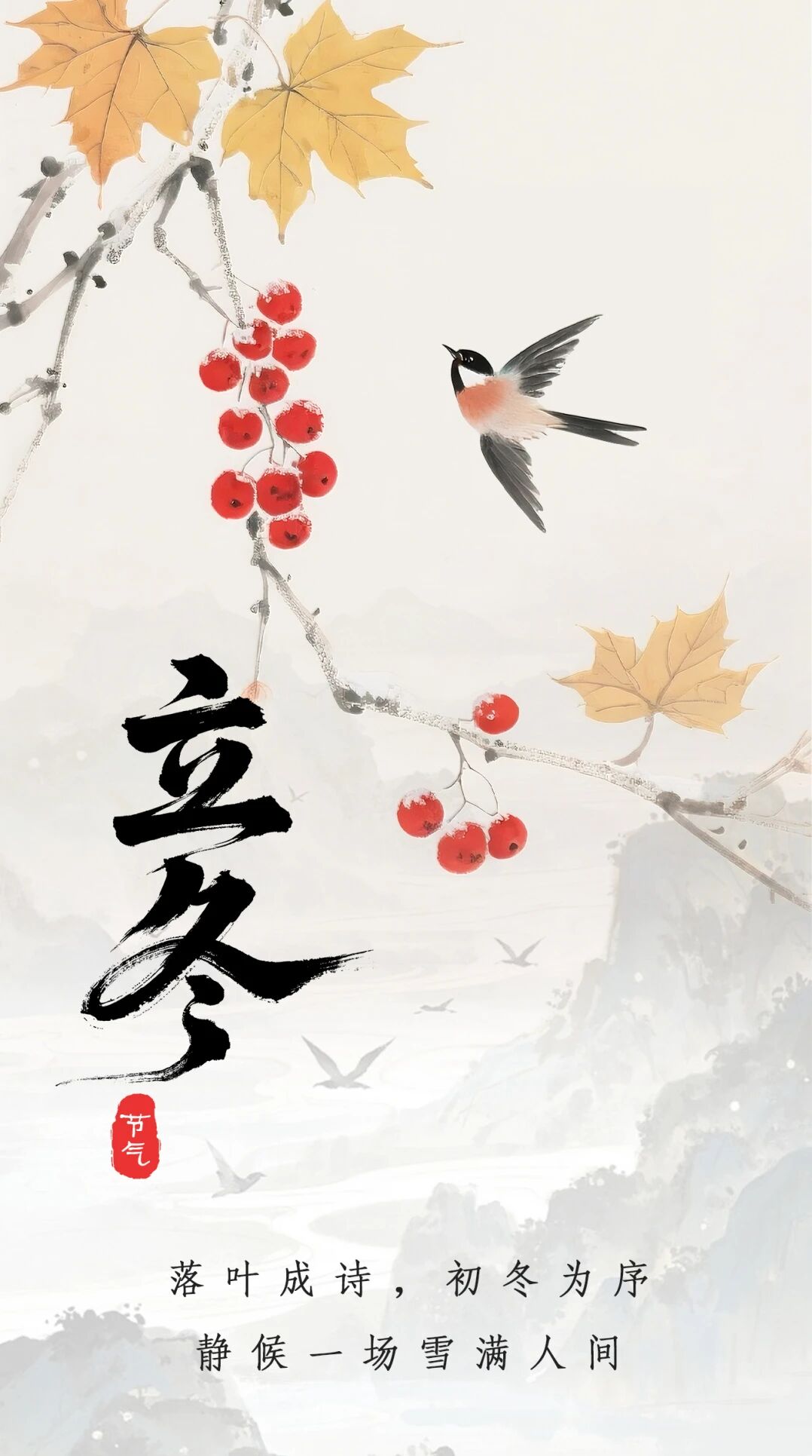 仇远的《立冬即事二首》则添了一分寒雨中的凄清与孤赏:“细雨生寒未有霜,庭前木叶半青黄。小春此去无多日,何处梅花一绽香。” 诗中所绘,正是立冬前后“小阳春”的独特景致。寒意随细雨萌生,草木色彩驳杂,而在这一片清冷之中,诗人却执着地寻觅着那报春早梅的初绽幽香。这于冬始之际对春信的寻觅与期待,是何等浪漫而充满生命力的诗心!