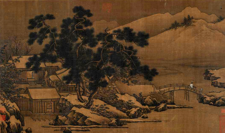 现藏于北京故宫博物院的由南宋画家刘松年所绘的《四景山水图》,将“春夏秋冬”四时之景藏入一幅幅江南园林小景中。桃花深院、湖心小亭、疏林书房、雪夜松庭……其中的《冬景》不仅描绘了一幅冬日景象,更构筑了一个理想化的、充满诗意的精神栖居之所。