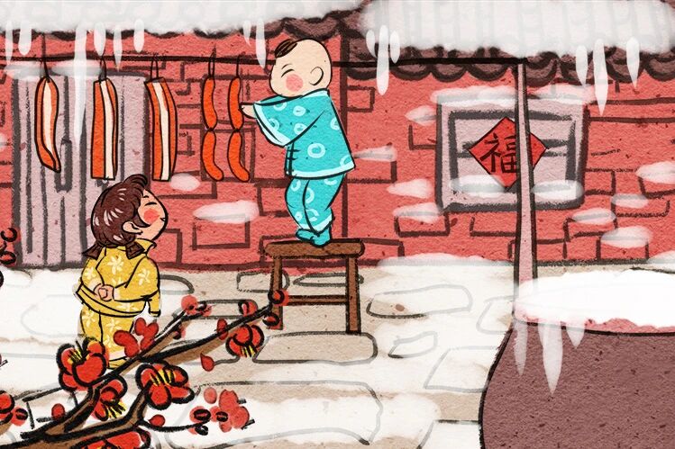 大雪时节,围绕“藏”与“补”,衍生出许多充满暖意的习俗。“未曾过年,先肥屋檐”,说的是到了大雪节气许多人家门口、窗台都挂上了腌肉、香肠等,形成了一道亮丽的风景。在我国南方地区,大雪前后,家家户户都会忙着腌制“咸货”,把腌制好的肉悬挂于檐下,冬日暖阳与凛冽寒风共同催化,造就了春节餐桌上的醇厚年味。这不仅是储存食物的智慧,更是对丰饶年景的期盼。