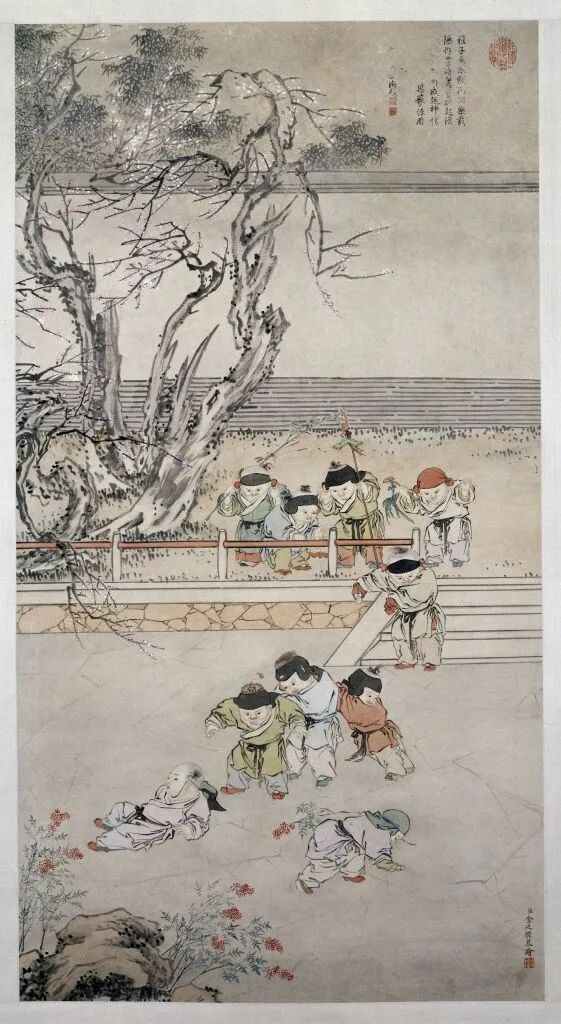 现藏于北京故宫博物院的《冰戏图》是清代宫廷画家金廷标创作的纸本设色画。金廷标是清乾隆时期最著名的宫廷画家之一,以人物画见长。他笔下的风俗人物朴实自然,贴近生活,情态生动,令观者心生亲切之感。