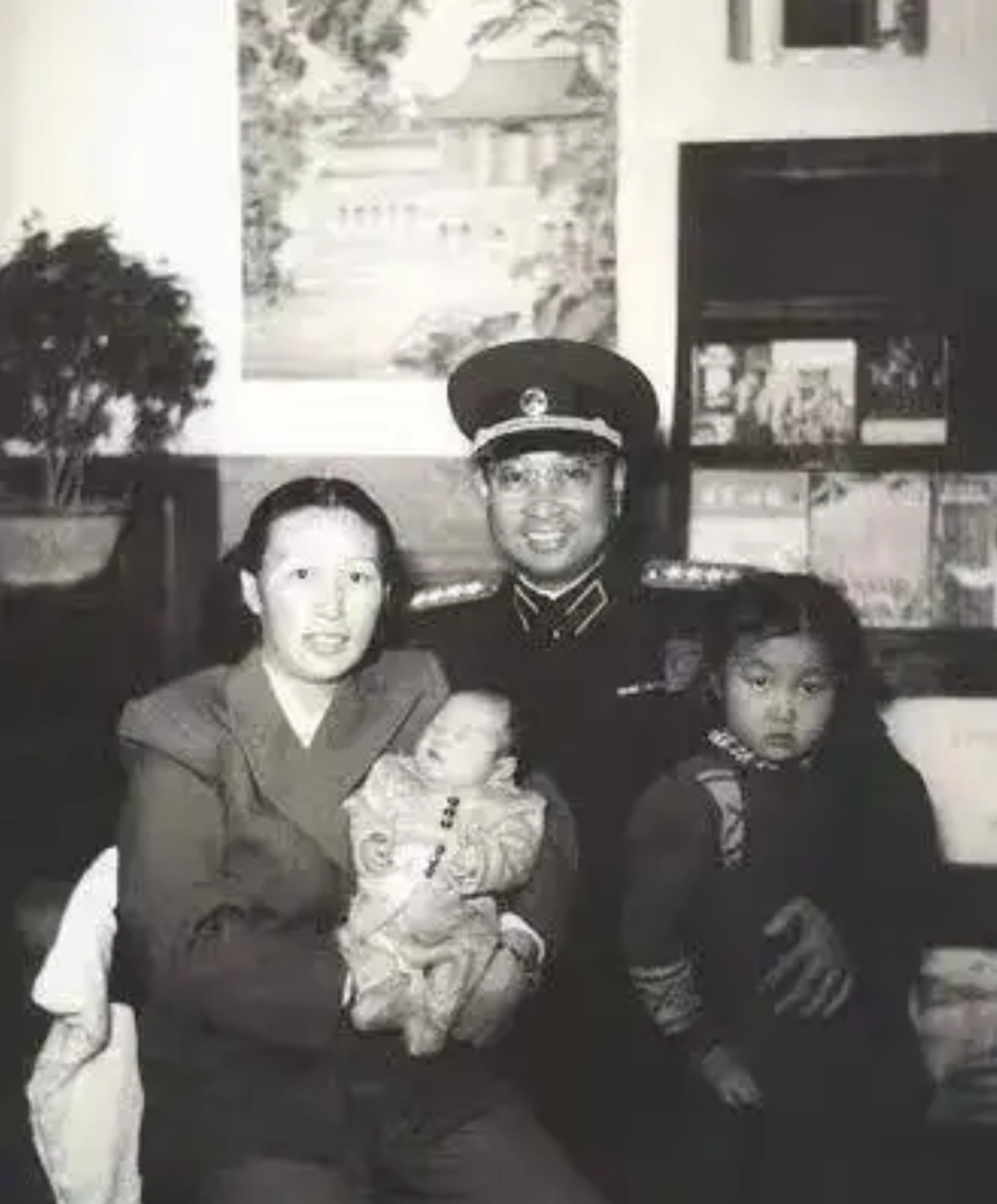 ▲1959年春节,陈赓全家合影。左起:陈赓、陈知进、陈知非、陈知涯、陈知建、傅涯、陈知庶、钱如琴(儿媳)