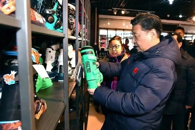 ▲2017年1月23日,习近平总书记在河北省张家口市考察北京冬奥会筹办工作时,来到云顶滑雪场考察雪具大厅,了解头盔、雪帽、雪镜、雪服、雪鞋、雪板等各式雪具的不同功用。