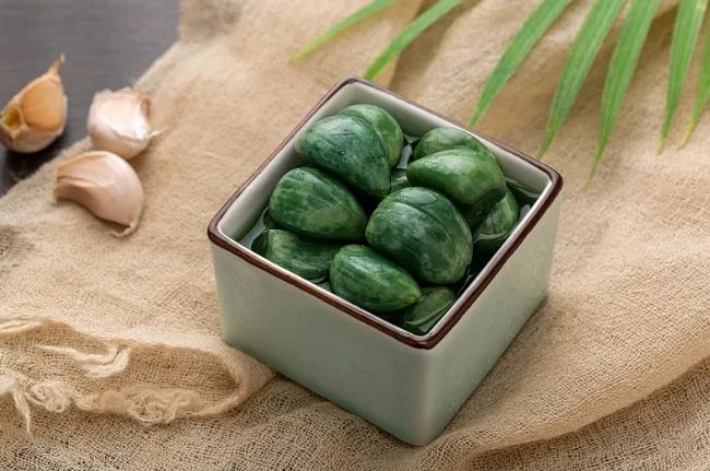 关于腊八蒜,还有这样一则谐音小故事:早期的人们崇尚“账不过年”,意思就是旧年的账不拖欠到新的一年。旧京时各家店铺都会在腊月拢账,把这一年的收支算出来,一般从腊八日起查算,如果发现有外账未销,但又不好意思当面催账,就送对方一罐腊八蒜。因为,大蒜的“蒜”与清算的“算”同音,所以收到腊八蒜的人,就能心领神会,赶在腊月结束之前还清债务,所以腊八蒜以前也称为“腊八算”。