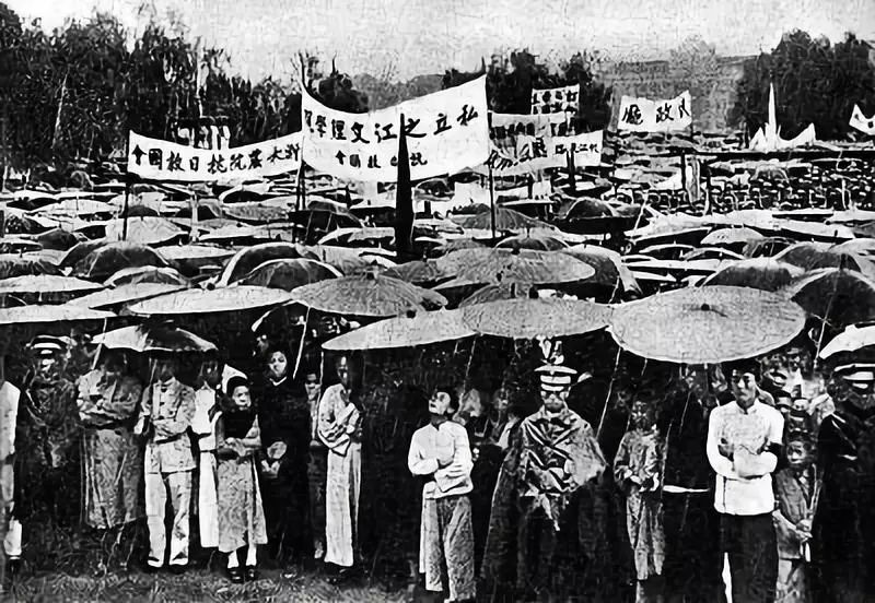 ▲九一八事变后,杭州市各界群众举行抗日救国大会。