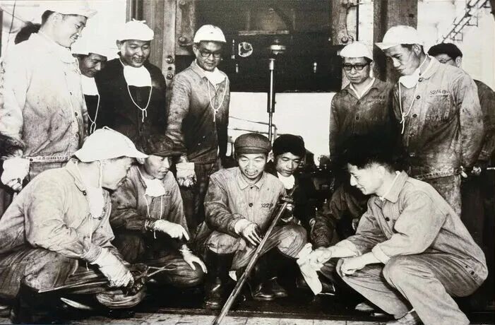 ▲技术人员和工人集中攻关的照片。图源:新华社