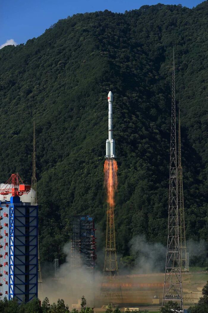 ▲2024年9月19日9时14分,我国在西昌卫星发射中心用长征三号乙运载火箭与远征一号上面级,成功发射第59、60颗北斗导航卫星。新华社发 杨志远 摄