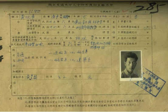 ▲国立交通大学(交通大学前身)1945年度招生报名单