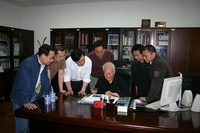 ▲黄旭华(左一)在工作中