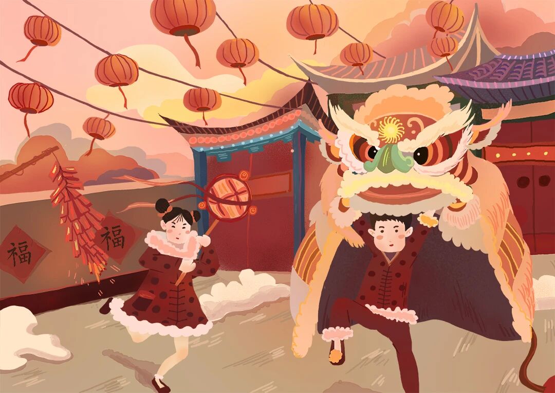 民间狮舞的习俗起源于三国时期,流行于南北朝,至今已有一千多年的历史。狮舞分南北派。北派“武狮”配以京锣、鼓、绣球等逗引瑞狮,南派“文狮”表演则更讲究表情、抖毛等。狮子为百兽之尊,形象雄伟俊武,给人以威严、勇猛之感。古人将它当作勇敢和力量的象征,认为它能驱邪镇妖、保佑人畜平安。所以逐渐形成了在元宵节时及其他重大活动里舞狮子的习俗,以祈望生活吉祥如意,事事平安。