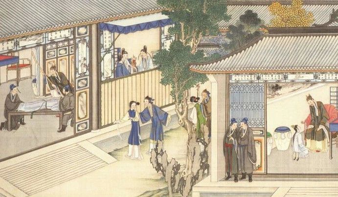 ▲清代孙温绘全本《红楼梦》中的第三回(局部)