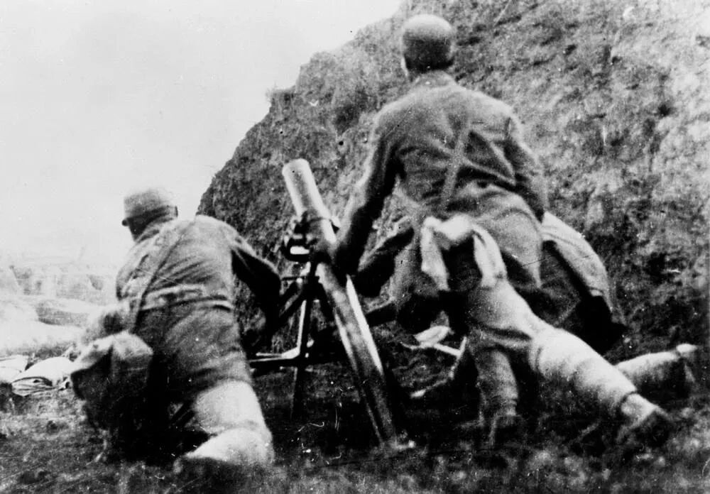 ▲1940年秋,八路军在华北地区先后集中了100多个团,对日本侵略军进行战略性进攻和反“扫荡”作战,沉重地打击了入侵之敌,打响了著名的“百团大战”。图为我军炮击敌碉堡。新华社发