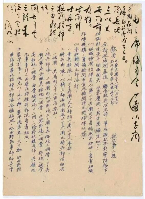 ▲周恩来同志对聂荣臻司令员关于阅兵方案的批示