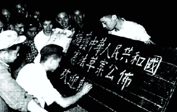 ▲宪法草案正式公布后,引发全国各界1.5亿余人参与宪法草案的学习讨论