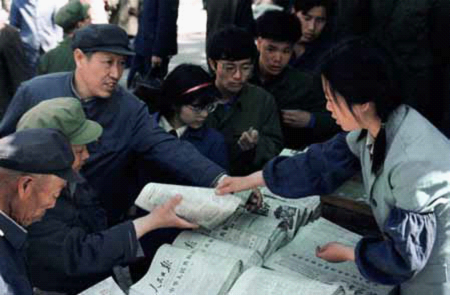 ▲1982年4月23日,《中华人民共和国宪法修改草案》公布后,北京市群众争相购阅