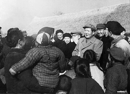 ▲1953年,毛泽东、陈毅、罗瑞卿访问南京郊区尧辰乡农村。