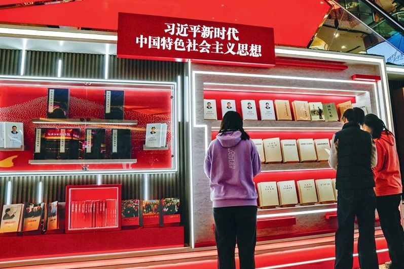 ▲图为2025年2月26日,读者在北京图书大厦习近平新时代中国特色社会主义思想专区阅读习近平总书记重要著作。 张琳/摄